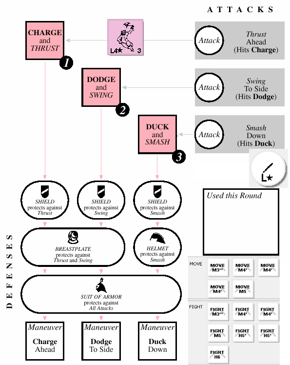 - Chits have a Type: FIGHT chits are used to attack, MOVE chits are used to defend. (MAGIC chits also exist, but that is for another time.)
